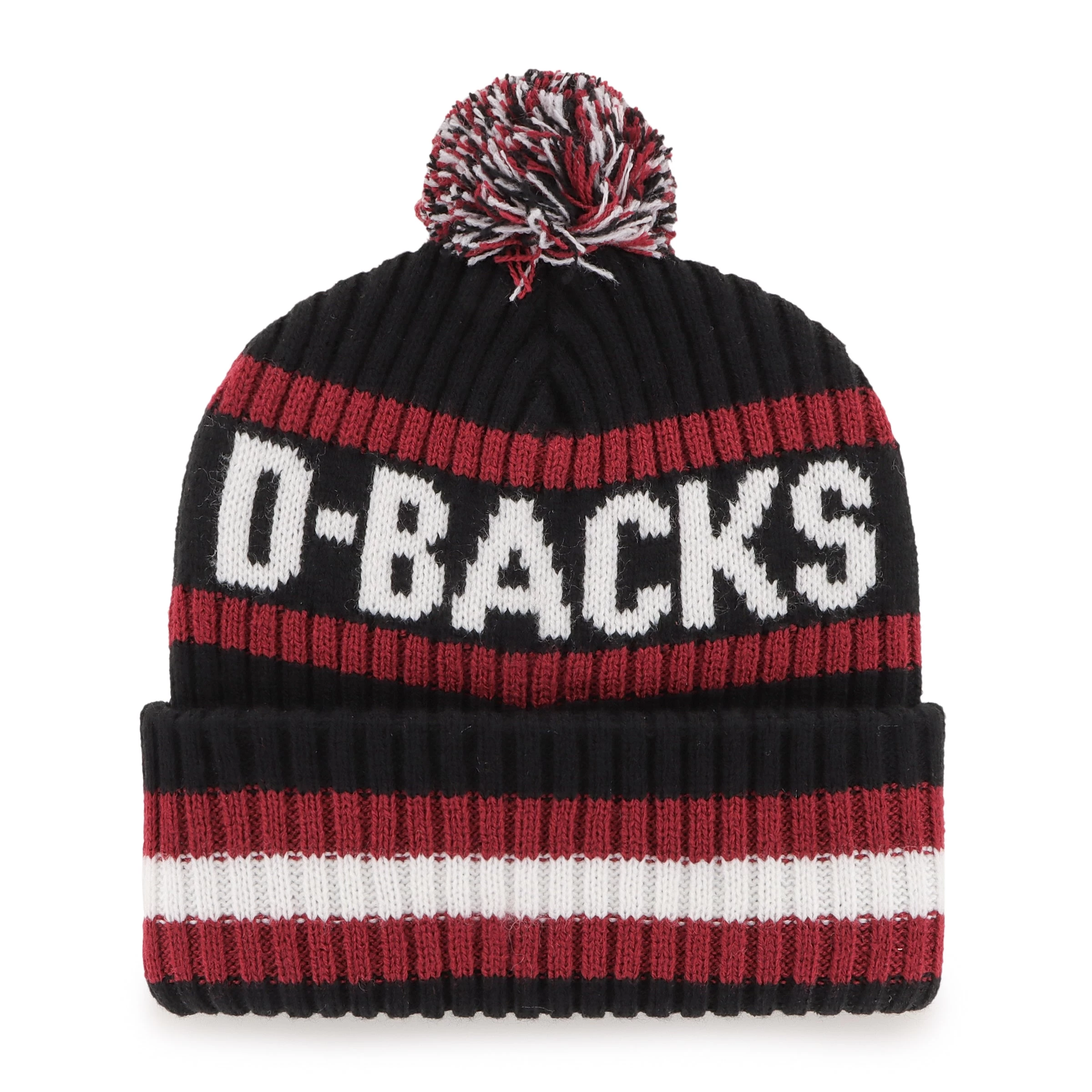 The Bering ’47 CUFF KNIT is made from soft and warm acrylic yarns and microfleece with text jacquard, raised front embroidery, and a pom on top.