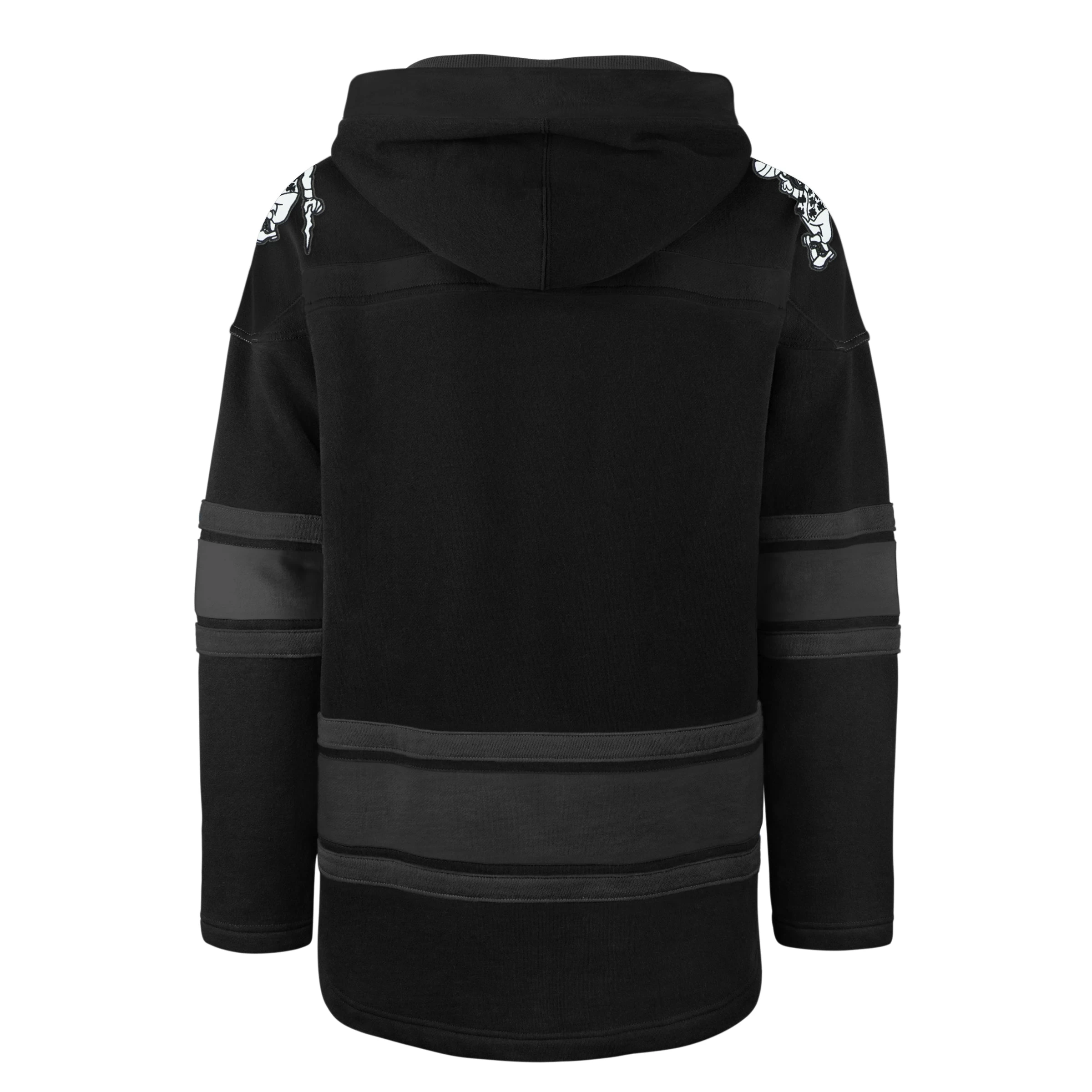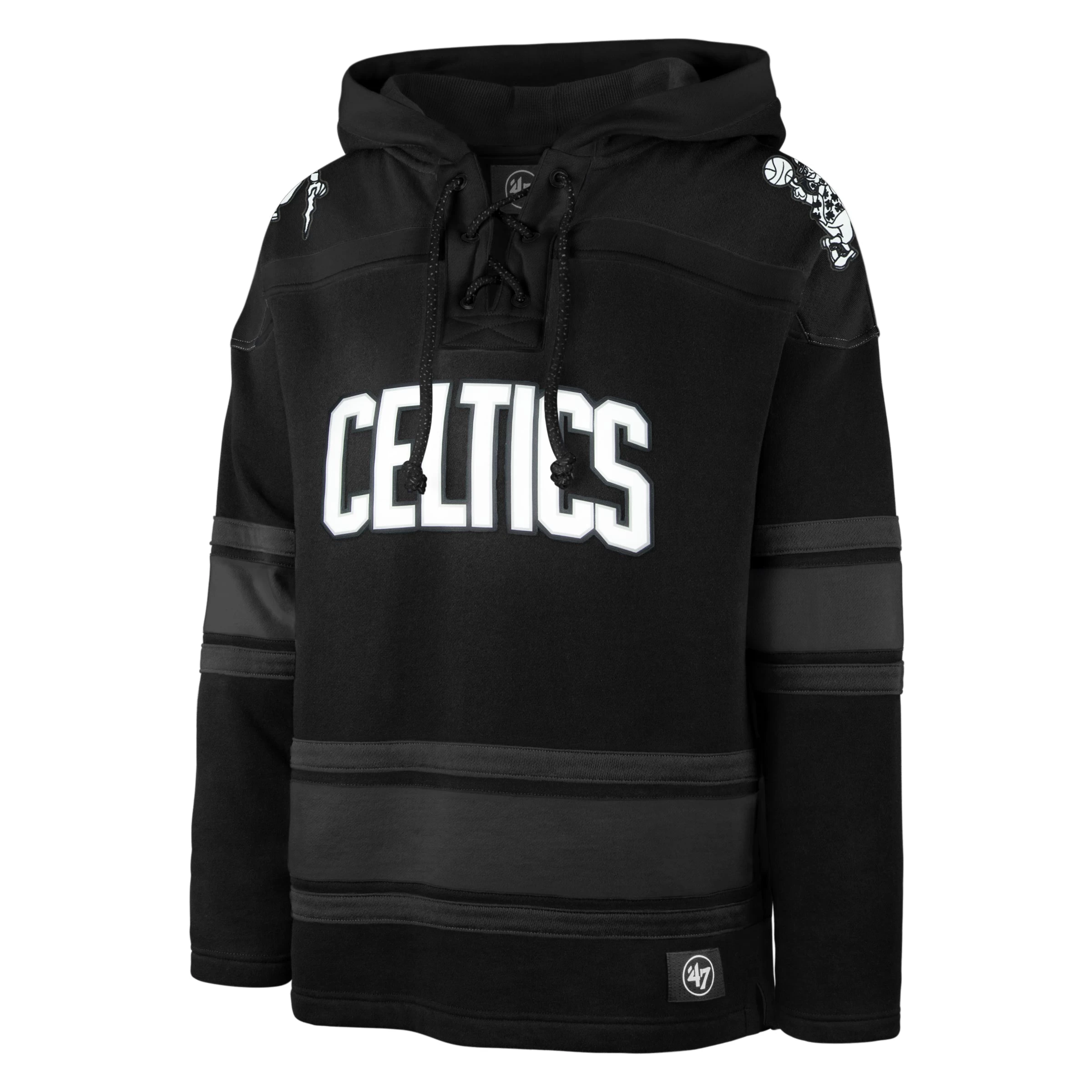 The Stadium Lights Collection is crafted with reflective accents that shine under the lights. The Anthracite Superior ’47 LACER features a jet black body with reflective appliquĂ© logos or wordmarks, plus reflective drawstrings.