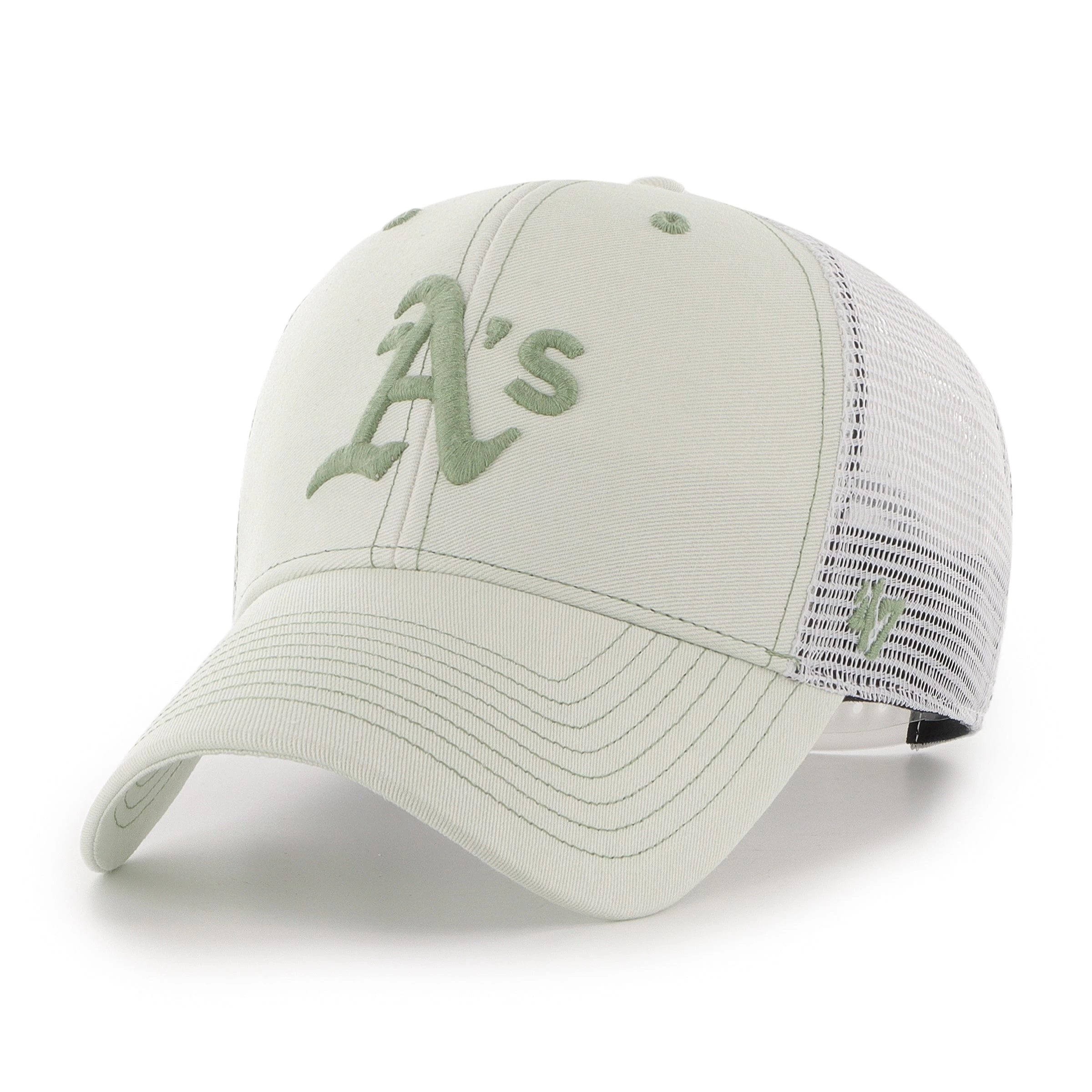 The Haze Mesh ’47 MVP has a structured crown, a curved visor, and a plastic snapback closure. The front has raised embroidery. Made from garment wash and hard mesh.